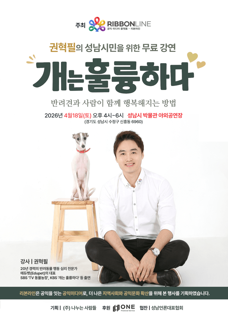 [성남 무료 강연]공익 미디어 플랫폼 리본라인, 반려견 전문가 권혁필 초청 무료 강연 개최