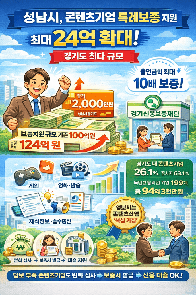 이번 확대는 현장 수요 증가와 성남시 콘텐츠 산업의 집중도를 반영한 결정이다. 성남시는 경기도 내에서 콘텐츠기업이 가장 많이 모여 있는 핵심 거점으로 평가되며, 이번 보증 확대는 성장 기반을 유지하면서도 자금 경색기에 기업의 운영 리스크를 낮추는 ‘현금흐름 방어’ 성격이 강하다는 분석이 나온다.