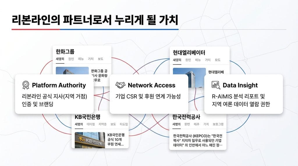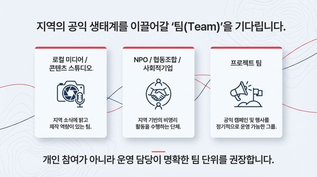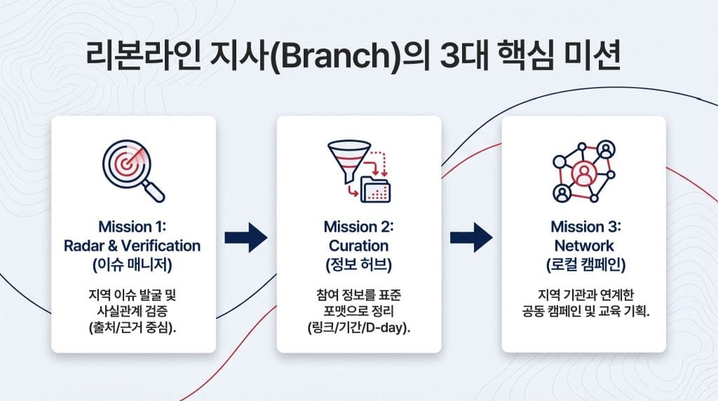 Share Facebook Twitter LinkedIn Pinterest Email Partner Status 리본라인(RibbonLine) 지사 현황 지역의 공익 이슈를 잇는 전국 거점 파트너를 소개합니다. 지사명 소재지(주소) 지사장 경기도 광주지사 경기 광주시 곤지암읍 신만로 9 김민선 인천 부평지사 인천시 부평구 경원대로 1344번길 34, 232호 구민서 공유용 짧은 링크복사