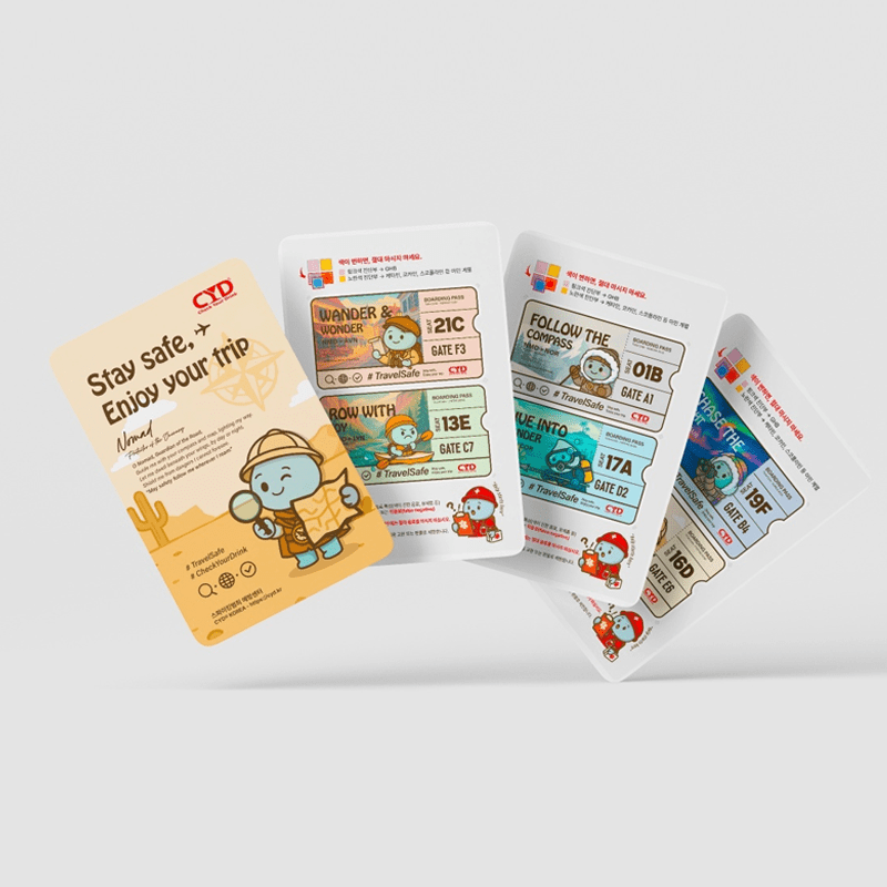 이 제품은 음료에 포함된 **마약 성분(GHB, 케타민 등)**을 빠르게 감지하는 초소형 진단키트입니다. 스마트폰, 여권 케이스, 여행용 물병 등에 부착 가능하여, 언제 어디서든 즉시 사용할 수 있습니다.